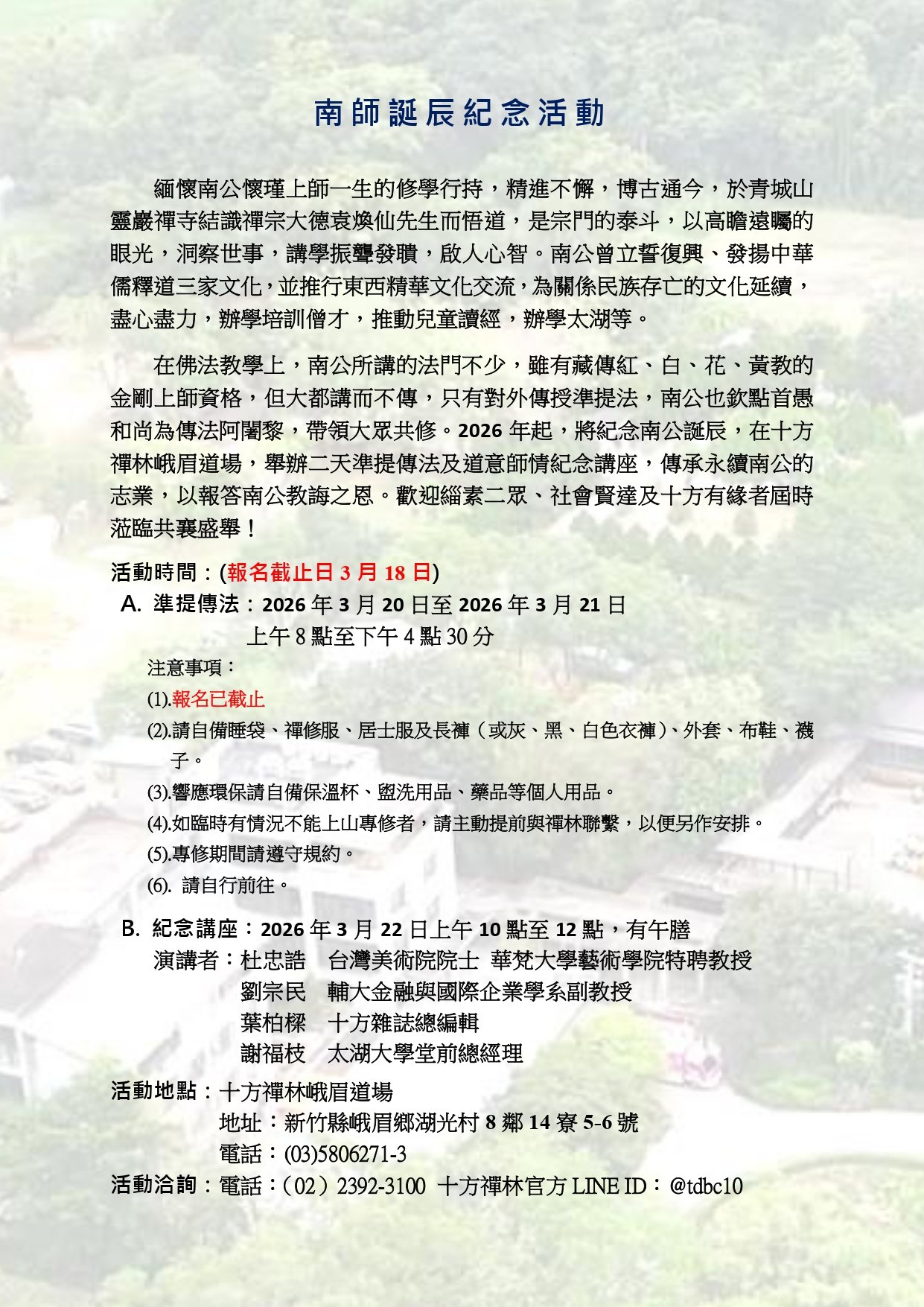2026南師紀念傳法活動