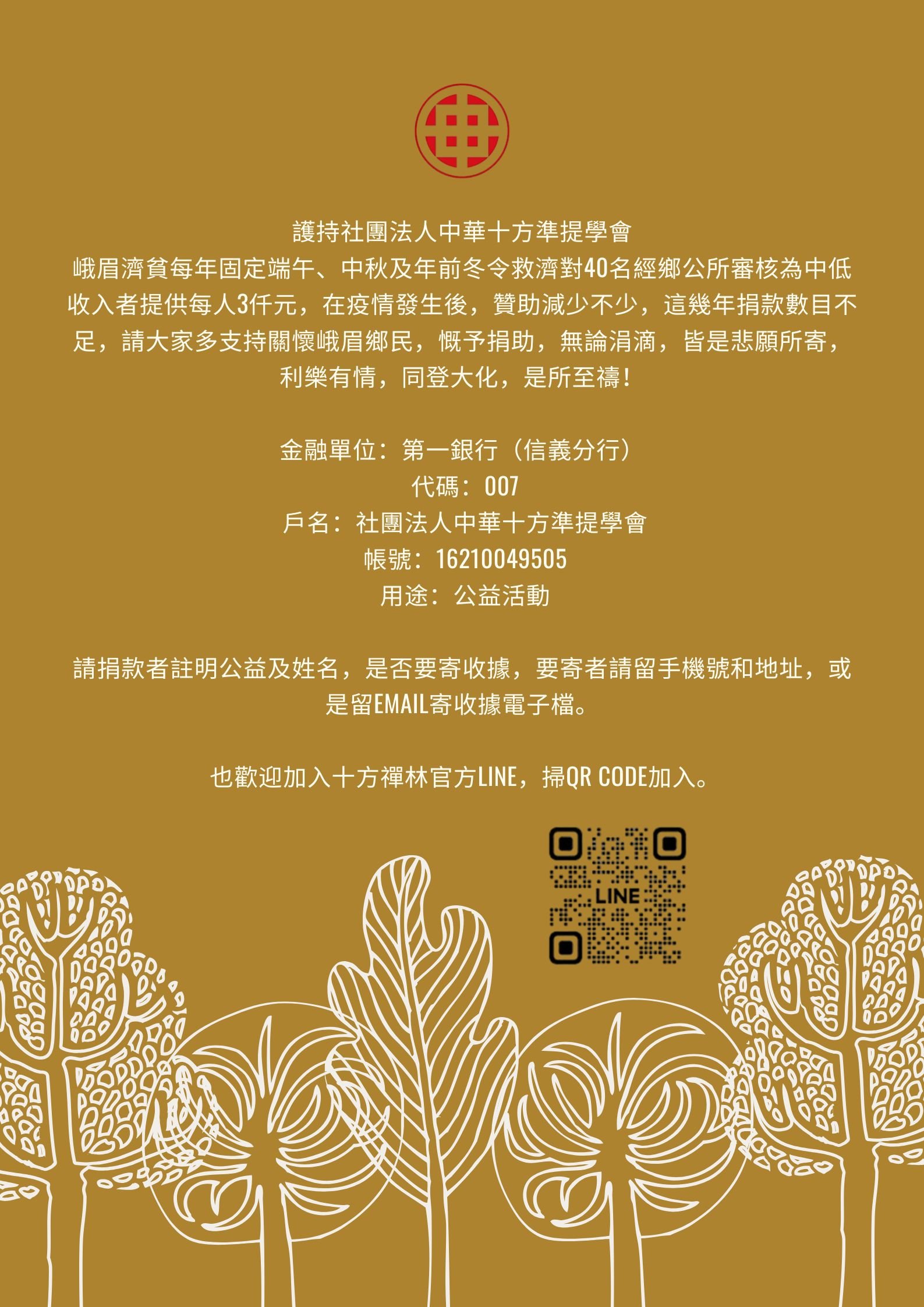 各位善信護法大德吉祥: 新春2026丙午吉祥年即將來臨,歡迎諸善大德發心為公司行號、父母、自身、兒女,點上光明燈,燃燈供佛,消災障、護平安、增福慧、成道果,若家中有考生,亦可增強考運,學業有成,祝福閤家身心安康。 2026年 消災吉祥光明燈-一盞全年新台幣1200元/人民幣¥280元 「燈」是光明與智慧的表徵,亦為十種供養之一。 祈願透過燃燈之意義,引領汝心中綻放真實心中「自性燈」。 《無量壽經》云: 「為世之燈明,乃人間最勝之福田。」 《華嚴經》云:「慧燈破諸闇。」...